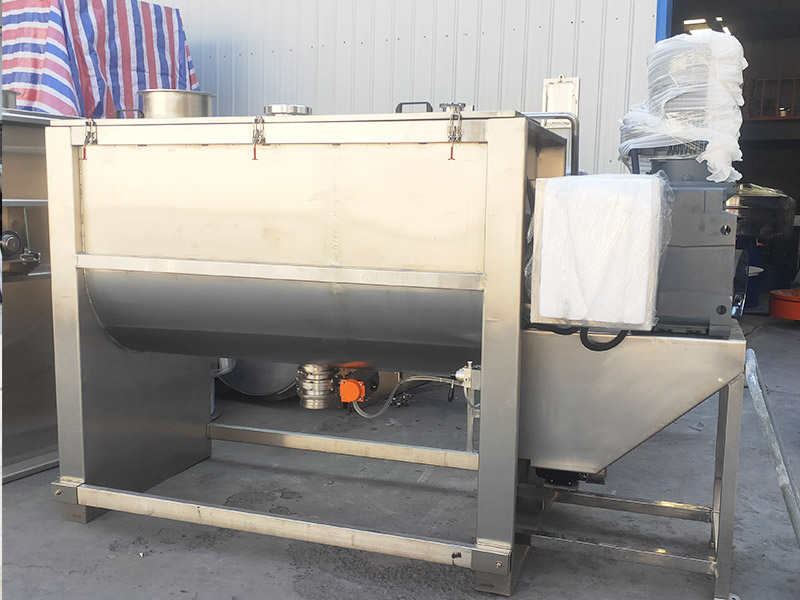 臥式螺帶混合機由U形筒體、螺帶攪拌葉片和傳動部件組成,螺帶狀葉片一般做成雙層工作時外支層摞帶將物料從兩側向中央匯集,內層螺帶將物料從中央向兩側輸送,形成對流混合。攪拌部件還可以制作成槳葉式或增加飛刀,適應不同的物料。筒蓋可做成拱形或全開式,拱形可以承壓,全開式方便清洗設備內部。臥式螺帶混合機適用于粉料與粉料、顆粒與粉料、粉料與少量液體的混合,該機對混合物適用性廣,對粘性物料能混合均勻,對顆粒物料能盡量保持顆粒的完整,對配比差異達到1:1000-1:10000的物料能較好的混合。還可以根據用戶的要求制作加熱、冷卻、正壓、真空。
