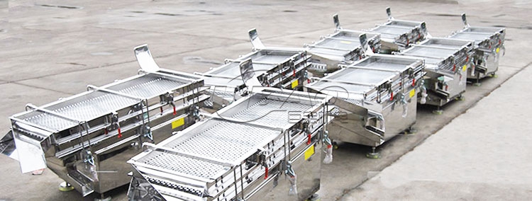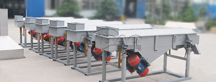 直線篩是雙振動電機驅動,當兩臺振動電機做同步、反向運轉時,其偏心塊所產生的激振力在平行于電機軸的方向相互氏消,在垂直于電機軸的方向疊為一合力,因此物料在直線篩機上的運動軌跡為直線向前做拋物線運動,兩電機軸相對篩面有一傾角在激振力和物料自重力的合力作用下物料在篩面上被拋起跳躍式向前作直線運動,從而達到對物料進行篩選和分級的目的。