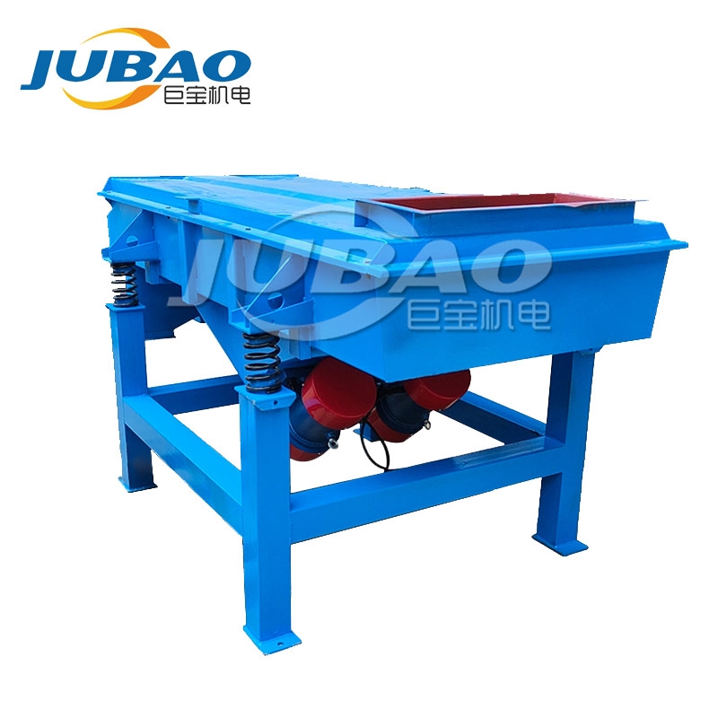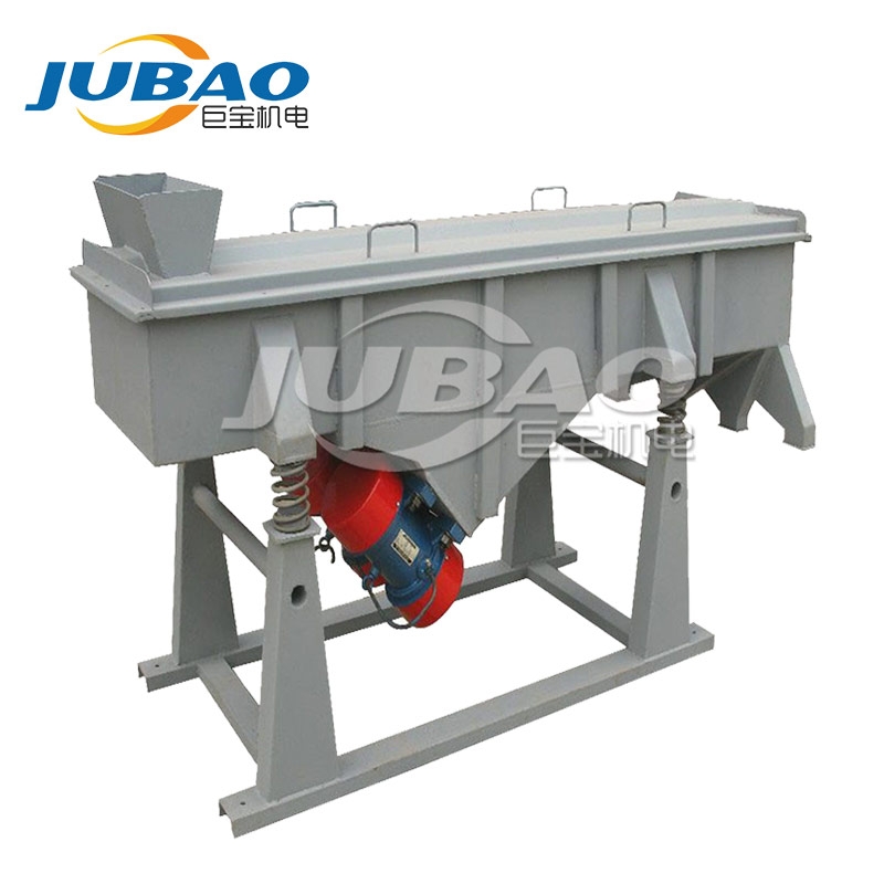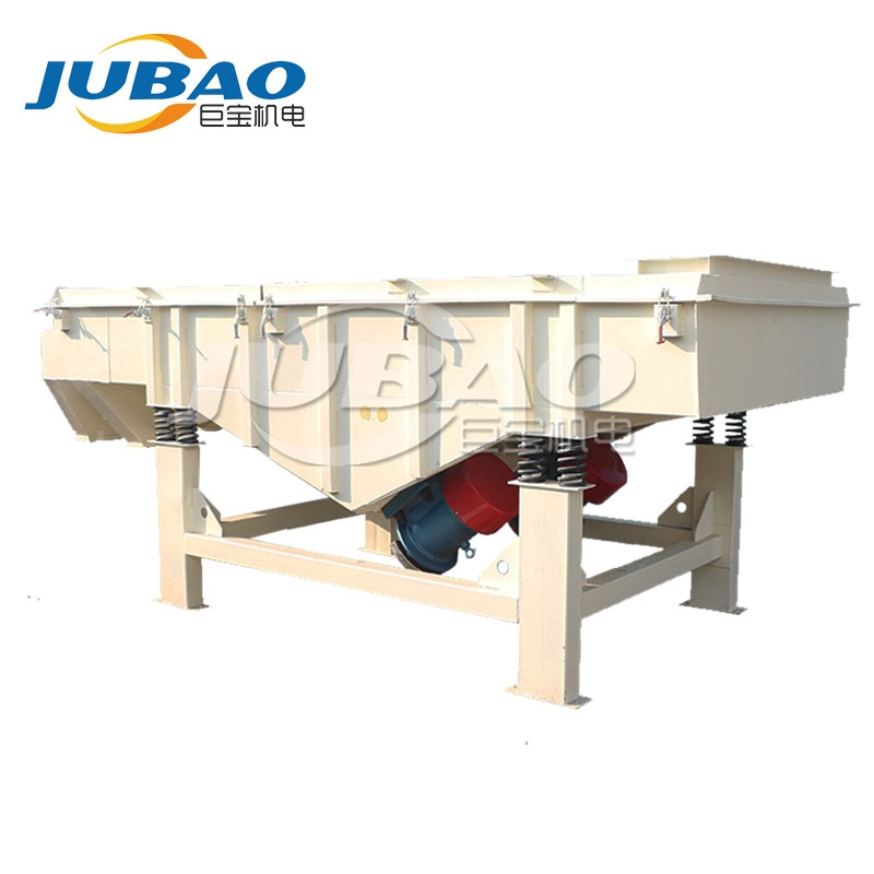 巨寶YS直線篩主要由篩箱、網架、篩網、振動電機、電機臺座、減振彈簧、支架組成。