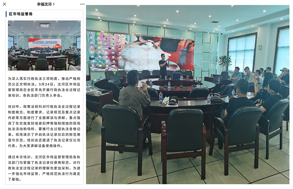 沈陽安豐電子工程有限公司參與沈陽市沈河區市場監督管理局“振興新突破、我要當先鋒”行政執法全過程記錄培訓。為參會人員深度講解執法記錄儀使用方法、規范。誠信服務社會、承擔企業責任?。?!