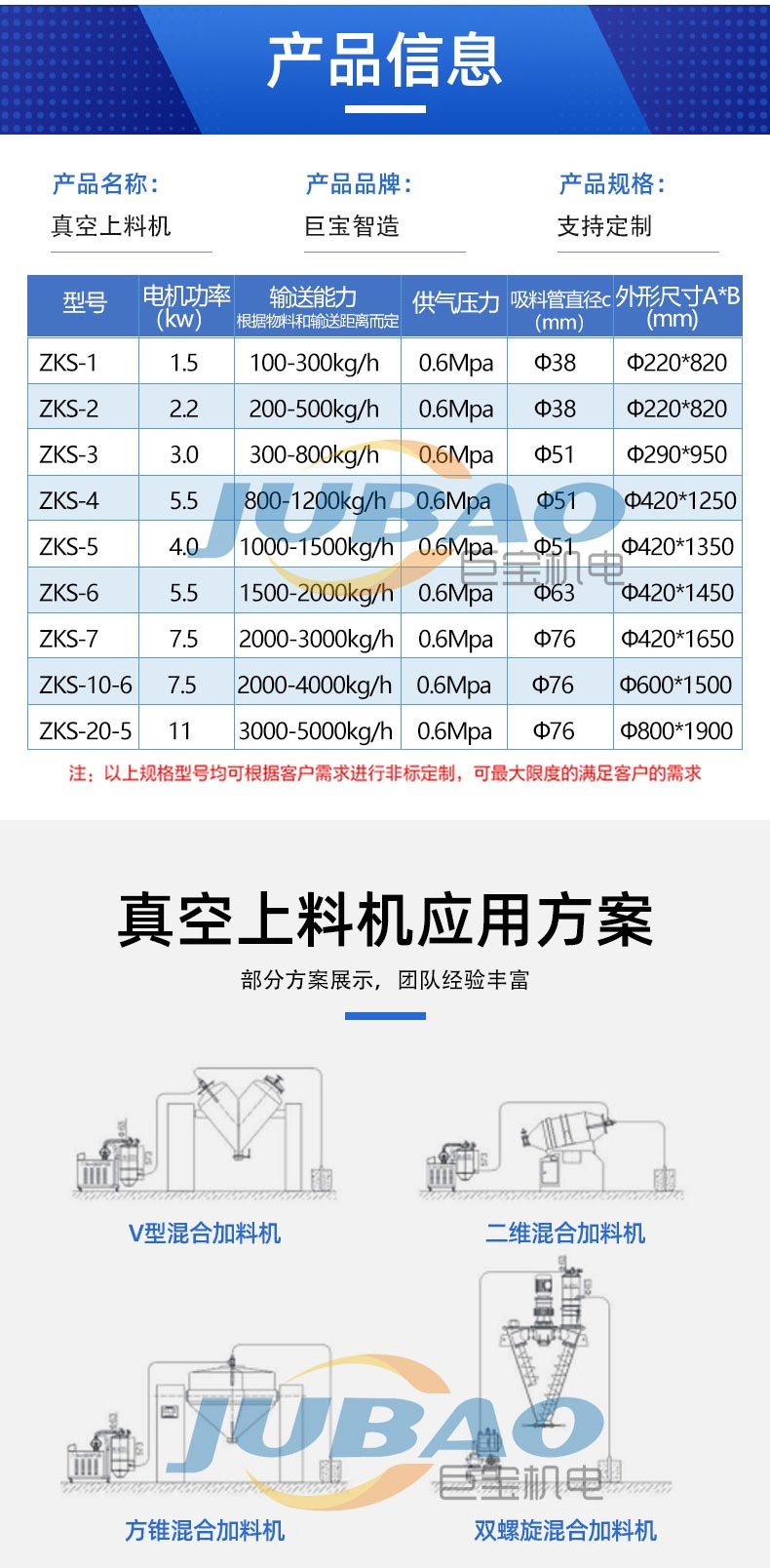 ZKS 真空上料機是用真空泵抽氣,使吸料嘴進口處及整個系統處一定的真空狀態,粉粒料隨同外界空氣被吸入料嘴,形成料氣流,經過吸料管到達料斗,在料斗中進行氣、料分離。分離后的物料進入受料設備。輸送、放料是通過氣動三通閥不斷地開、閉來完成的,而氣動三通閥的開閉是由控制中心來控制的。